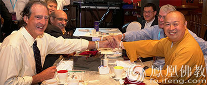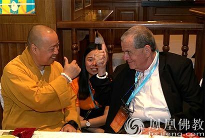 印顺大和尚与诺贝尔医学奖获得者理查德•罗伯茨交谈(图片来源:凤凰佛教 摄影:顿行)