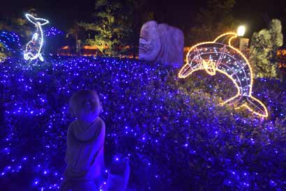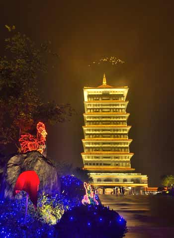 多宝白塔前灿烂的花灯(图片来源:佛光祖庭大觉寺)