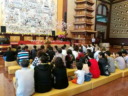 国庆假期游人如织 佛光祖庭法师教唱《十修歌》
