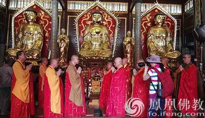 参加闽台佛教文化交流周及研讨会的大德法师和专家学者参拜了福州著名禅宗祖庭道场雪峰崇圣禅寺。(图片来源:凤凰佛教 摄影:传观法师)