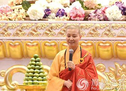 都监妙士法师勉励朝山的信徒,修道要精进勇猛。(图片来源:凤凰佛教 摄影:周云)