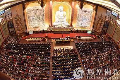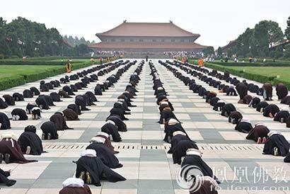 佛光祖庭国庆假期朝山祈福,在大雄宝殿回向。(图片来源:凤凰佛教 摄影:周云)