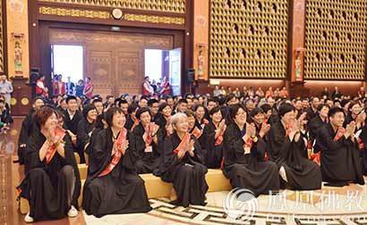 都监妙士法师教唱《石灰吟》,信众欢喜学习。(图片来源:凤凰佛教 摄影:周云)