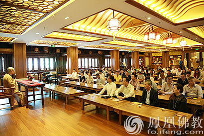 在古色古香,清净优雅的大佛寺禅茶室,港澳政协委员参访团的朋友们放松身心席地而坐,一边品着独具佛门风味的妙香禅茶,一边聆听耀智大和尚慈悲开示。