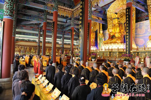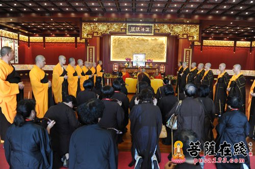 菩萨在线广东讯 2016年10月11日,杨枝净水赞的唱诵声随浩荡秋风,从珠海普陀寺普光明殿传出,上接苍穹,下达地府,天际云开雨歇,群峰静立,远山回响。珠海普陀寺“丙申年水陆普度大斋胜会”洒净熏坛法会隆重举行。果慧法师、悟定法师、安国法师共同主法,百余位法师、数百名善信居士共同参加。
