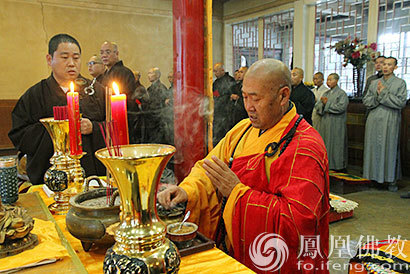 剃度前礼佛(图片来源:凤凰佛教 摄影:净善)