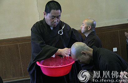剃度前的准备(图片来源:凤凰佛教 摄影:净善)