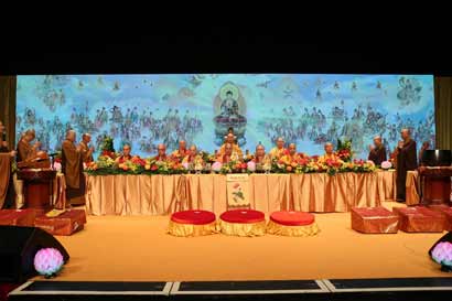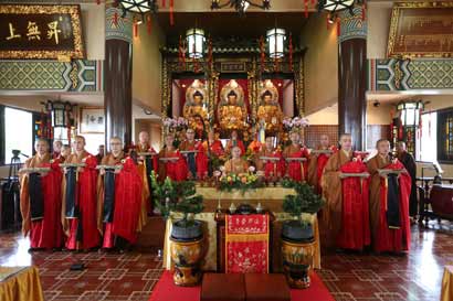 宏明大和尚、上海玉佛禅寺住持觉醒大和尚、天台山国清寺住持允观大和尚、浙江宁波七塔禅寺住持可祥大和尚、浙江象山灵佑寺式清大和尚、浙江宁波金峨禅寺住持慧明大和尚、上海七宝教寺住持慧平大和尚、浙江温州妙果寺住持达照大和尚、台湾秀峰山静修禅院住持常源大和尚、甘肃武威鸠摩罗什寺住持理方大和尚于台上齐齐主法传灯,并纷纷于最后为大众送上祝福。