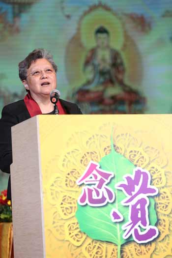 范徐丽泰女士藉致辞与大众分享了她自己与觉光长老相识二十多年的珍贵友谊,更盛赞觉光长老为成功争取佛诞成为香港公众假期所做的不懈努力。范太赞扬“觉念计划」传承觉光长老的精神为香港谋福利,救助需要帮助的人,并称赞在如今这个充满烦嚣的社会,佛教能帮助人们获得心中的平安,生活的平安,乃至快乐地生活。致辞最后,范太一方面感谢大会的邀请,另一方祝福大家吉祥如意,健康快乐。