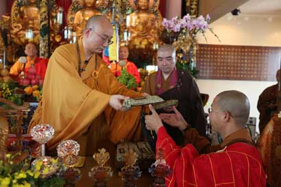 宏明大和尚传法卷于法嗣(图片来源:香港观宗寺,摄影:张建)