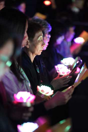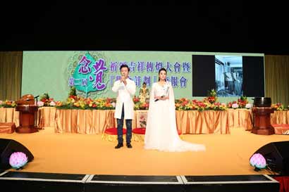 周旋小姐与洛一先生合唱大会主题曲《念觉》(图片来源:香港观宗寺,摄影:李杰飞)
