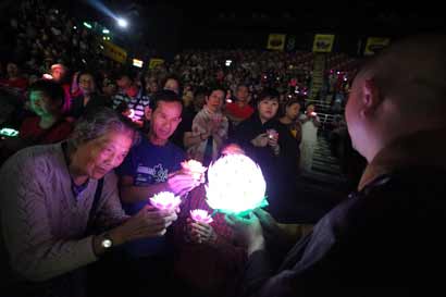 诸法师于台上主法传灯(图片来源:香港观宗寺,摄影:李杰飞)