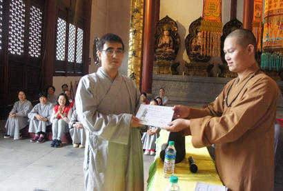 10月7日上午9:00,在圣集寺雷音宝殿举行了国庆阅藏禅修体验营闭营典礼。闭营典礼由上高圣济寺住持常愿法师主持。闭营典礼上,圣集寺监院光明法师,大众阅藏网导师元闻法师,圣集寺融峰法师都为本次体验营闭营做了精彩的开示。并且这次体验营有40位营员受了三皈五戒皈依三宝,还有30位营员授了八关斋戒、种下了菩提种子。真正的智慧是我们内在的智慧,通过开发内在的智慧,点亮内在的心灯,这个心灯要带到每个角落去,带到各个地方,灯灯相续。