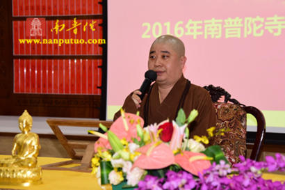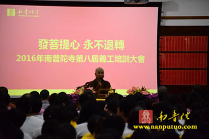 2016年10月15日,厦门南普陀寺于五观堂隆重举行第八届义工培训大会。上午8时,在庄严的《三宝歌》中,2000余名义工肃立合十,至诚恭迎南普陀寺方丈、义工导师则悟大和尚作佛法开示。