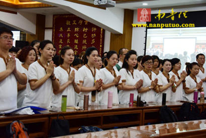 大和尚在开示中说:南普陀寺义工队伍从成立之初的三百多人发展到如今将近四千多人,陆续有来自不同领域的义工发心来到寺院,从最初服务道场到走进厦门市各个寺庙,走入社区,走向社会。即使在医院里也能看见义工们的身影,为病患提供关怀,以巨大的慈悲心,舒缓他们的身心,散播大爱,成为厦门爱心的代表,获得厦门各界的赞叹与感恩。通过修学佛法,服务道场,让义工们心胸宽阔,放下自我,少生烦恼,家庭更加美满;同时,义工们展现出来的庄严面貌与慈悲心,不仅在身体力行中净化自我,也感染了更多人加入到义工团队;八年来,义工们从数量上,质量上都得到了提高,在观念上,行动上,服务内容上,也都得到全面提升,这是非常难得,非常不可思议的。除了护持寺院、服务社区,寺院也十分重视义工的学修功课。在接下来的培训课程中,希望大家也能身心投入。大和尚强调,学习的内容固然重要,但是最重要的还是自己的发心,要把这两天当成短期修行,收摄身口意三业,修习菩萨道,修持菩提心,将心安在近处。须知学佛重在调心,要能做到满眼皆是佛菩萨,满心都是善意,以无分别心服务大众。通过这个平台让自己受益,然后传播出去,让更多人受益,在佛光之下,大家共得解脱。