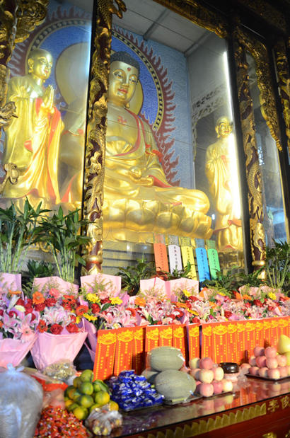 下午14点30分,四众弟子及信众集聚大雄宝殿,供品繁多,佛香飘香。此次法会由重庆华岩寺义悲法师主法。在维那师引领大众唱诵炉香赞和净水赞后,义悲法师执持杨枝净水,杨枝说水文:“菩萨柳头甘露水,能令一滴遍十方,腥膻垢秽尽蠲除,令此坛场悉清净”。而后众法师、居士从大雄宝殿出发,由左而右,拾阶而上,依次绕行“大坛”、“楞严坛”、“法华坛”、“诸经坛”、“净土坛”、“华严坛”等诸坛一路高唱梵咒,遍洒净水。通过诵咒净坛,以梵唱佛音庄严道场,为恭请诸佛菩萨等圣众光临做好准备,祈愿龙天护持,法会圆满。本次水陆法会将持续七天,将举行上供、拜粱皇宝忏、拜忏诵经等法事活动。