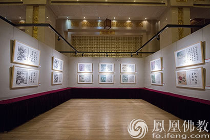 在成立大会上,以“书香画禅法自然”为主题的书画展同时开幕。觉醒大和尚、13位书画名家及2位篆刻家的百余幅作品于玉佛禅寺多功能厅展出。(图片来源:凤凰佛教)