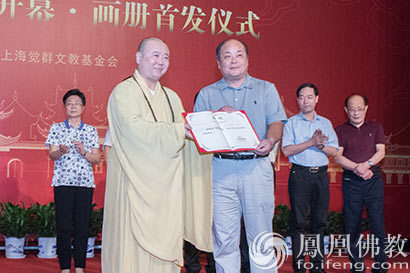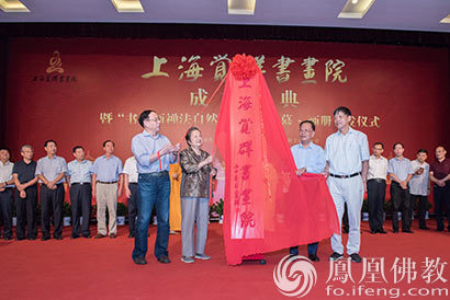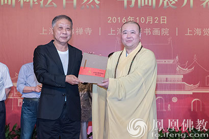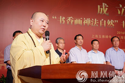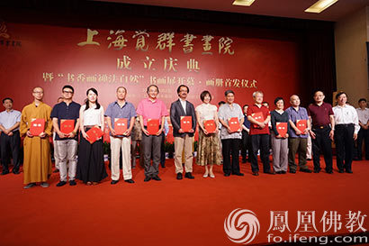 10月2日,上海觉群书画院成立庆典暨“书香画禅法自然”书画展开幕、画册首发仪式在上海玉佛禅寺举行,相关单位领导到场祝贺。(图片来源:凤凰佛教)
