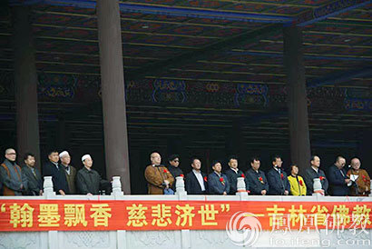 16日活动开幕式由吉林省宗教文化交流协会秘书长王昭华主持,吉林省宗教局副局长、吉林省宗教文化交流协会会长安玉杰、吉林省佛教协会副会长释正行法师、吉林省佛教协会副会长兼秘书长张海忠居士、吉林省佛教协会副秘书长,长春万寿寺方丈释照睿法师先后讲话和致辞,吉林省宗教局局长、吉林省宗教文化交流协会名誉会长朴松烈宣布书画展开幕。吉林省宗教局副巡视员尹金山、吉林省委统战部、吉林省政协民宗委、省及长春市民委(宗教局)、省民族干部学校的领导、特邀嘉宾台湾明海法师、全省性宗教团体负责人、省佛教协会部分班子成员及理事、省内主要寺庙负责人及佛教信众、吉林省宗教文化交流协会部分成员、爱心艺术家、企业家和书画作者及社会各界爱心人士共计1000余人参加了开幕式和义卖活动。