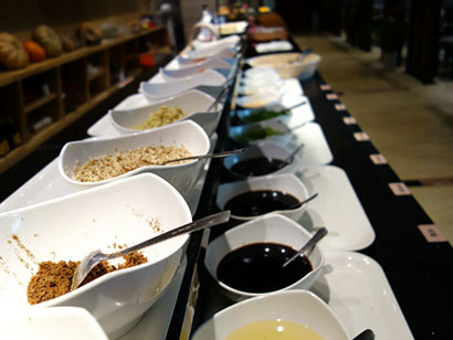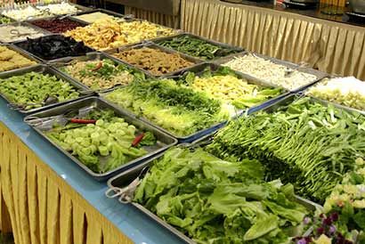 刚到新梅园圆通素食城(深圳店)时,感觉很是惊讶。一是惊讶其4000 m2的超大营业面积,这个规模在素食自助餐厅中极为罕见;二是惊讶其自助餐28元网订消费价,居然可以吃到约一百五十种炒菜、凉菜、中西点、养生汤、新鲜水果……(二楼的自助火锅网订消费价也仅38元。)