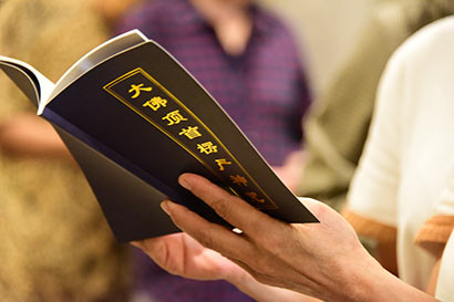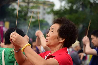 厦门本地的夫妻俩在大殿祈愿时说,家里常年供奉观世音菩萨,因为今天是菩萨出家纪念日,所以特地起早来南普陀寺拜佛。在这里看到大家个个都虔诚礼佛,感觉整个人都很通透,内心也升起慈悲心,还特意在大悲殿前诵三遍《心经》,希望能够回向十方众生,保佑众生平安喜乐。