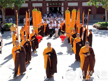 南山寺众法师迎请与会代表(图片来源:凤凰佛教 摄影:昌俊)