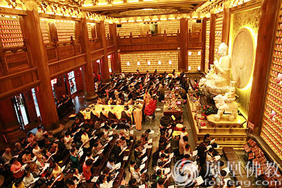 法会现场,妙像庄严,僧俗大众虔诚礼忏。