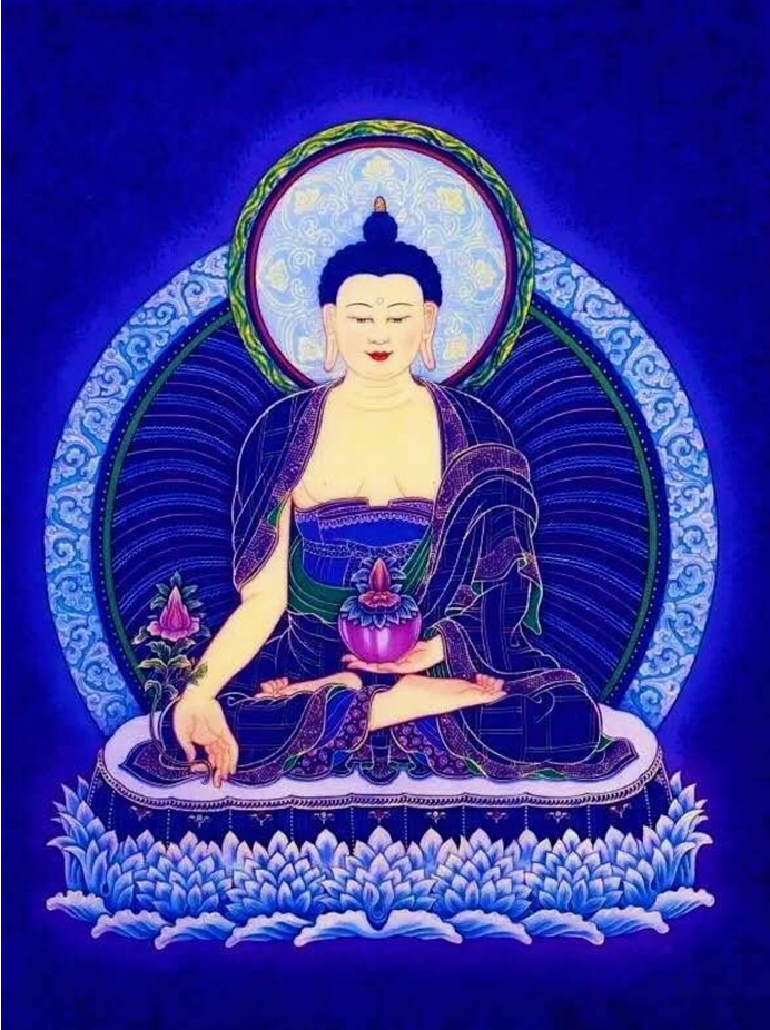 东方表无生,地水火风本来就是空,一切病皆从妄心起,离妄归真则病得痊愈。东方指菩提心的生起,向东方药师佛忏悔业障,菩提心的金刚体性得证后,能摧灭一切罪业,能忏除过去违犯的戒律,乃至五逆十恶之罪皆能清净。所以药师佛的“药”不仅可以治凡夫四大不调的病,还可以治愚痴病、所知障、烦恼障,清净人们所违犯的罪业,身心总治,所以药师佛又叫“医王佛”。