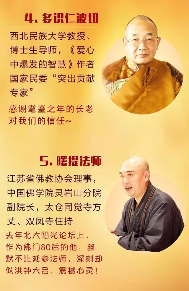 去年金秋,首届“公共智慧与社会发展”阳光论坛在北大的盛大启航… 这是一场罕见的汉、藏、欧、美世界级学者、精神导师,打破民族、国籍界限,共同聚焦佛学文化、东方智慧的顶级盛会。两日论坛,现场视频、图文直播实时观看达75万人次,网友实时分享达130万人次,吸引三十余家社会主流媒体报道… 今年十月,就在北京八大处公园柳溪山房广场,第二届“公共智慧与社会发展”阳光论坛即将盛大召开!!! 先记住论坛时间,2016年10月15、16两日(刚好周末,刚好阴历十五、十六) 那么你最关心的来了,这场论坛既然在这么高规格的地方举行,来的嘉宾都有谁呢? 本届论坛嘉宾 论坛主题:舍利精神 畅销书作家 四川雅江县佛教协会副会长 北京大学新闻与传播学院教授、博士生导师 成都大慈寺首座,被誉为“教育和尚” 相信你不会错过这场盛会! 也期待你能支持这场难得的智慧公益! 报名时间:10月8日-10月9日 报名方式:点击这里报名啦! 另外还有许多现场嘉宾的书籍、法宝作为结缘品赠送大家!真真一场智慧盛宴,名符其实! 想亲临现场报道这场文化盛宴的媒体朋友,请发函至邮箱zhengxintang888@163.com,并注明所在的媒体、拟出席的场次及联系方式。 北京大学公共传播与社会发展研究中心 北京微普西山文化发展有限公司 甲和灯APP 爱心联益 (不分先后) 甲和灯 | 大释界 | 露雨轩 | 佛医堂 | 生幼堂 云水山房 | 素食星球 | 觉茶道 | 月溪香林 正气堂 | 五福素斋 | 缘园九号 | 莲池海会 漫话佛学 | 觉醒艺术 | 正心堂 | 晨光脑瘫儿童中心