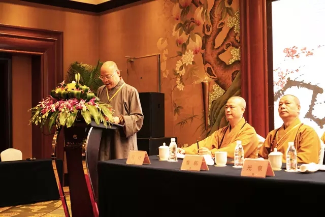 光泉法师宣读中国佛教协会副会长、湖南省佛教协会会长圣辉法师的贺信