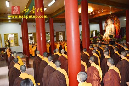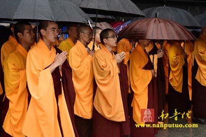 诵经拜愿,缅怀妙湛老和尚。(图片来源:南普陀在线)