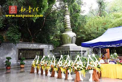 2016年11月27日,农历十月廿八,正值先任南普陀寺方丈、闽南佛学院院长、南普陀寺慈善事业基金会会长妙湛老和尚诞生106周年,圆寂21周年的纪念日,上午10时,南普陀寺、闽南佛学院全体僧众在妙老塔前举行了庄重的诵经上供追思纪念法会。受南普陀寺方丈、闽南佛学院院长、厦门南普陀寺慈善会会长则悟大和尚委托,南普陀寺慈善会副秘书长正兴法师念诵悼文,追忆老和尚一生功绩;南普陀寺首座慧然法师拈香主法,领众诵经拜愿,深切缅怀。