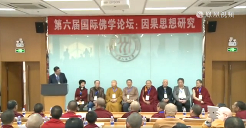 10月29日至30日,“第六届国际佛学论坛:因果思想研究”在中国人民大学举行,来自北京大学、中国人民大学、北京师范大学、南京大学、中国社会科学院、青海民族大学、中国藏语系高级佛学院、美国哥伦比亚大学、斯里兰卡凯拉尼亚大学等学术机构及上海慈慧文化研究所、苏州西园寺戒幢佛学院、扬州鉴真佛学院、沈阳法轮寺、大庆正洁寺、日喀则扎什伦布寺、玉树拉布寺、阿坝查理寺、甘孜寺、石渠色须寺、巴塘却丹寺等佛教界人才重镇的50位学者发表论文,与会者200余人,凤凰佛教网络直播参与者达33万余人。会议由中国人民大学国际佛学研究中心、佛教与宗教学理论研究所、哲学院及美国哥伦比亚大学孔子学院、凤凰佛教等单位联合主办,是一场国内外高校之间、学术机构与宗教界及媒体之间有效合作的成功会议。