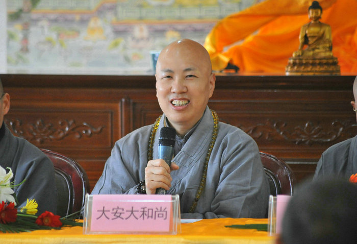 随后大安大和尚殷切地告诫学员们,学佛的目的就是为了解决了生脱死的大事,而不仅仅是学些名相概念,否则即使学成大通家,到了生死关头也还是手忙脚乱,无法了脱轮回。学修净土法门除了平时每天念佛之外,昼夜经行其实是一种很好的方法,是堪验自己信愿行的好机会,深信切愿具体就是要落实在执持名号上。昼夜不间断念佛是有圣言量依据的,《阿弥陀经》《无量寿经》都有提到这种行持。大和尚透露这次学修班期间的经行要动真格,要做到“四不”——不吃、不喝、不睡、不拉,二十四小时就在念佛堂,要超越吃喝拉撒睡。只要心安在名号上,与名号相应,就能超越这些身心的烦恼。通过修行,才会有自知自明,才会从自身找原因。接着大和尚又告诫学员们,学佛要追求真才实学,要真修实干。结业证书只是一张纸而已,得到阿弥陀佛“签字”的“绿卡”才是真正有价值的。