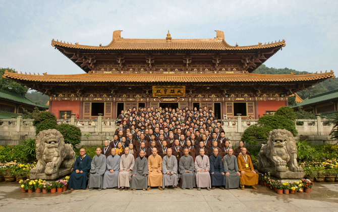 2016年11月6日,农历十月初七,上午9时,东林寺第九届莲宗学修培训班开学典礼在香光讲堂二楼隆重举行,来自全国各地以及东林寺净土研习班近两百余名学员济济一堂,开始了为期两周的培训。东林寺方丈大安大和尚、监院德亮法师、弘法教育部主任定圆法师、大知客德慈法师和授课法师会同法师出席了典礼,并在主席台就座。开学典礼由东林莲社负责人、本届学修班班主任德凯法师主持。