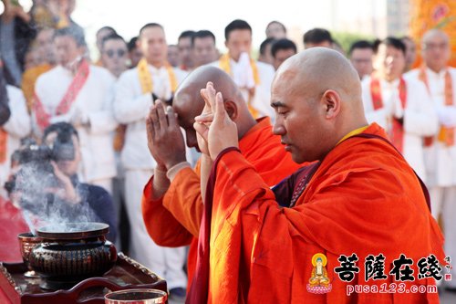 斯里兰卡最高僧伽委员会委员、斯里兰佛牙寺方丈特使穆鲁丹尼耶·达玛拉萨纳(左一)拈香