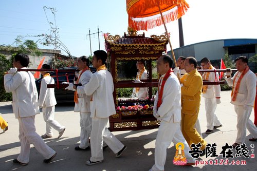 护法居士护送舍利(图片来源:菩萨在线 摄影:妙梵)