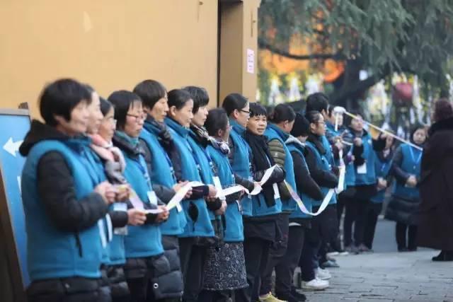 明公上人追思法会前 凌晨四点,灵岩山寺常住正在紧锣密鼓地安排着明学老和尚追思法会,今日的灵岩寺不同往日,早早寺院一片喧哗,各个堂口分工明细,来个不同地区的信众和义工井然有序地听从常住师父的安排。