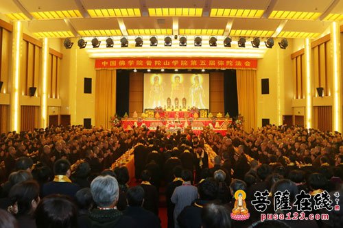 菩萨在线浙江讯 2016年12月11日(农历十一月十三),中国佛学院普陀山学院第五届弥陀法会在学院国际会议中心举行。本届法会由中国佛学院普陀山学院主办,学僧会承办,全院师生及居士共五百余人参加。
