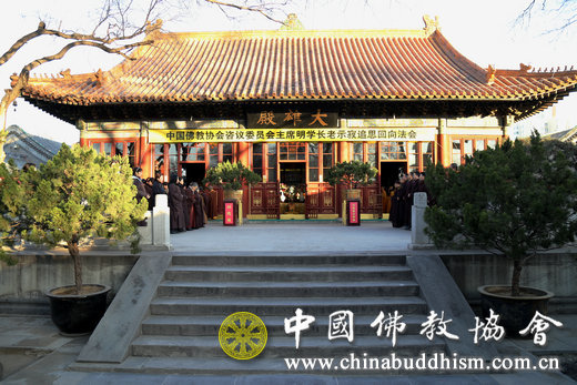 2016年12月7日上午,中国佛教协会在北京广济寺大雄宝殿举行“中国佛教协会咨议委员会主席明学长老示寂追思回向法会”。