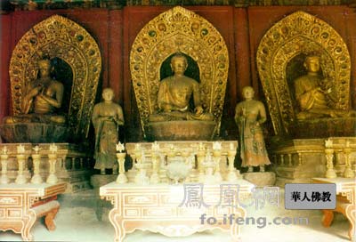 承德溥仁寺竖三世佛像(图片来源:凤凰佛教)