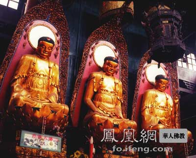 九华山祗园寺大雄宝殿横三世佛像(图片来源:凤凰佛教)
