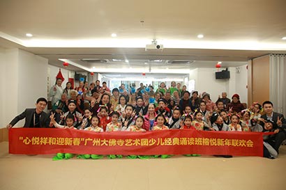 2017年1月22日,在这新春佳节到来之际,由越秀区榕悦城市长者照料中心主办的“心悦祥和”大佛寺少儿经典诵读班榕悦新年联欢会,在榕悦中心热烈举行。