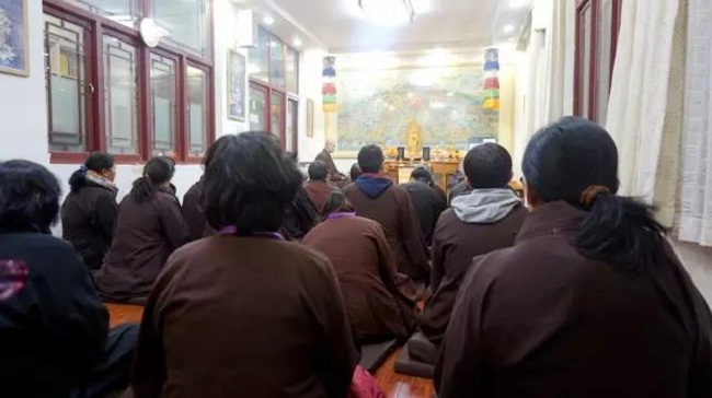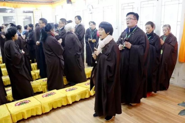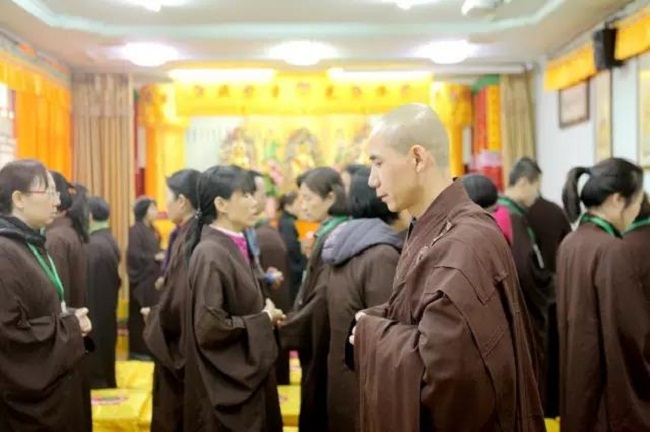 1月15日上午,法师为部分信众传授了三皈五戒,并勉励当信受念佛法门,遵循正确的方法修行。 这三天里大家共同修行,共沾法益,增强了信愿,为将来往生极乐世界积累资粮。为此每个念佛人法喜充满,至诚顶礼感恩东林祖庭上大下安大和尚和常住法师们,感恩北京松堂关怀医院朱院长和普贤莲社的护法居士义工们。祈愿广大净业行人 :温暖菩提路, 携手安养国 。