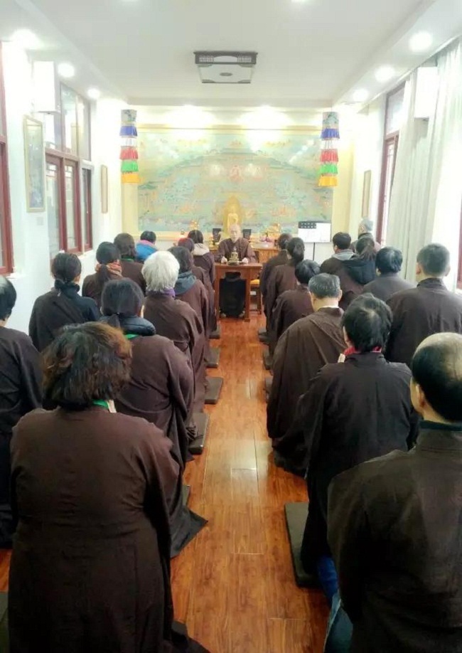 应北京普贤莲社再度邀请,庐山东林寺莲社德凯法师、德准法师一行莅临北京,主持为期三天的精进念佛共修,百余人在普贤莲社的福慧讲堂和法雨堂持戒念佛。