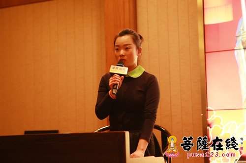 路亚静女士代表营销中心总经理介绍地藏圣像景区春节系列活动
