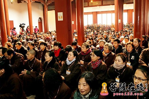 菩萨在线浙江讯 2017年2月2日(农历正月初六),新春伊始,灵隐寺老斋堂诵经声洪亮整齐,灵隐寺居士诵经贺新春活动在朗朗诵经声中拉开序幕,三百多名居士从四面八方赶来,共贺新春。