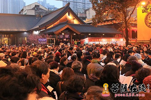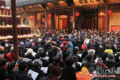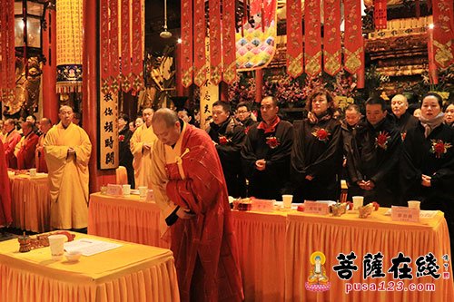 菩萨在线上海讯 斋天又称供天,是人们一年之中为答谢天神护法的保佑而进行的一种法事,也有护法善信以供天祈福消灾。2017年2月5日(农历正月初九),玉佛禅寺举行丁酉新春供佛斋天祈福法会,各地居士信众踊跃参加,法会现场法喜充满,吉祥殊胜。