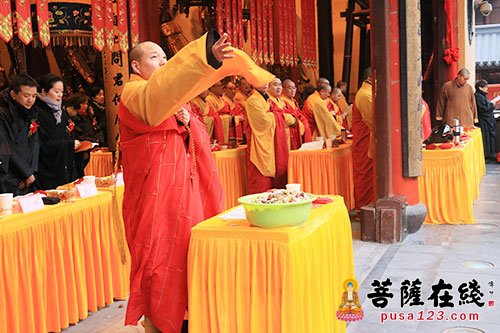 在庄严殊胜的梵呗、诵经声中,恭请三宝及诸天用斋,并祈祷祝愿,回向法界有情,消灾免难,祸去福来。感念过去一年来三宝及诸天的加持及护佑之德;更祈在新的一年里灾障消除、身体健康、吉祥如意。