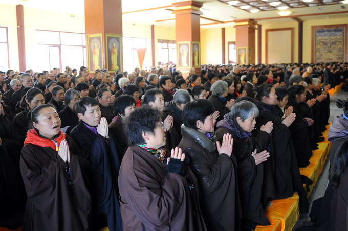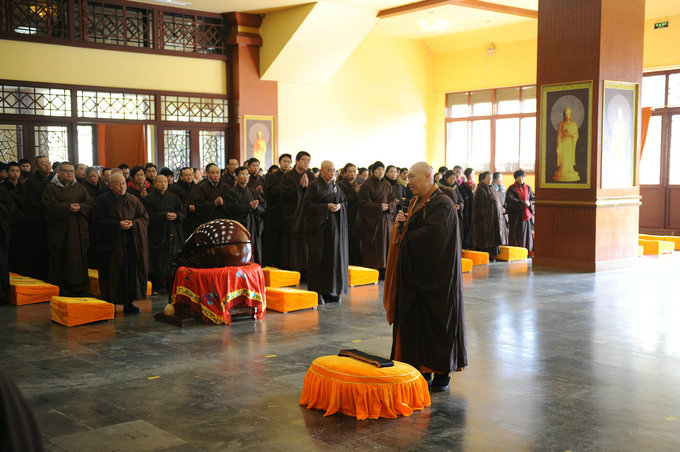 13日下午二时三十分,四众弟子在悦众师父引领下,进行了虔敬的大回向,愿天下众生同沾法恩,早登莲邦。至下午三时,东林寺2017年2月份一昼夜经行法会圆满结束。